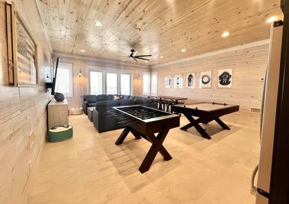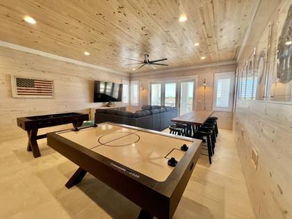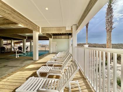 Media Room and 3 living rooms + 2 bonus rooms, each floor has common space area so you can spread out and enjoy the luxury! The private wrap-around balconies will amaze you. Each bedroom enjoys spectacular views of the Gulf or Lagoon, has its own deck. Private hot tub is the perfect touch on one of the many decks. On the ground level you'll find a large private pool, and a big outdoor living space. This area is also perfect for outdoor gathering. Pool heat is available for $60/day.
