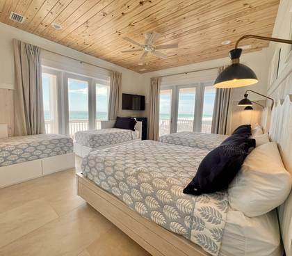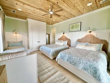 Teens can have their own private refuge on 3rd floor with a family room with large TV and kitchenette, 2 bunk rooms and 2 full baths. This breathtaking beach house is located at the quiet end of West Beach, just a few hundred feet from the Bon Secour Wildlife Refuge. Bring the entire family and then some - everyone sleeps under one roof with lots of private baths, 2 primary suites and plenty of places for the kids.