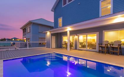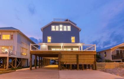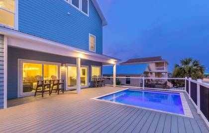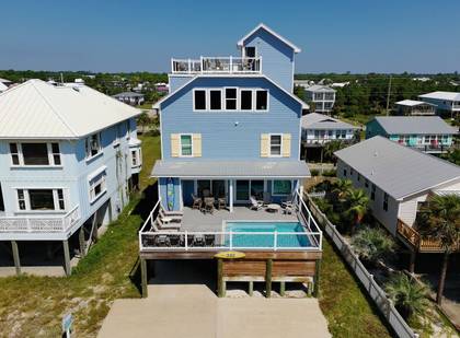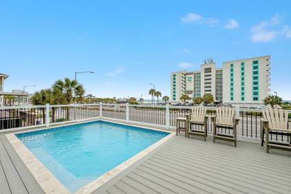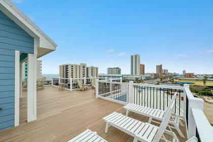 Located in Gulf Shores AL right across the street from the main public beach and just a few steps from the famous Hangout, the Pink Pony Pub and everywhere you want to go in the center of Gulf Shores! It is the perfect location to attend events at Gulf Place including the NCAA Women Beach Volleyball Championship, Annual National Shrimp Festival, Boots in the Sand Music Festival (formerly the Hangout Music Festival) and more. Enjoy great beach and Gulf Shores views from the rooftop terrace. Hangout Vista is directly across from the west side of the public beach. Hangout Vista features a private outdoor 14'x16' gunite pool that can be heated October-May for $60 per day, with a large deck and a convenient pool bathroom. The top floor has a theatre room with 9 reclining chairs and a game room with pool table and table top video game plus nooks for 4 to sleep. To top it all off, a great rooftop deck!