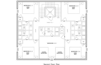 2nd floor: 4 King Bedrooms, each with a Private Bath, 1 Bedroom with 2 Queen Beds (sleeps 4)