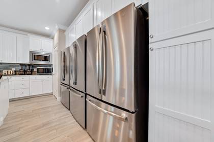 The well-equipped kitchen has 3 refrigerators, double range with 2 ovens, a commercial ice machine, 2 microwaves, 2 coffee makers and 2 Keurig's and everything you need to cook and serve a feast.Â