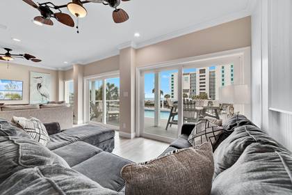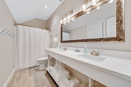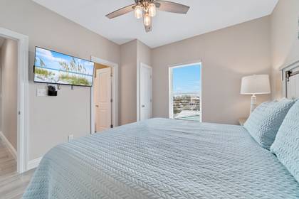 Hangout Vista is located in the heart of Gulf Shores, a short walk to restaurants, shops and more. With a pool, a roof top deck, a home theater, a game room and more, you'll love this house that is an easy walk to all of the restaurants, shops and activities in the middle of Gulf Shores. You'll enjoy 8 bedrooms, each with a full private bath, plus a hall bath, and 2 half baths (1 out by the pool), 2 laundries and an elevator.