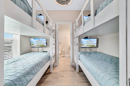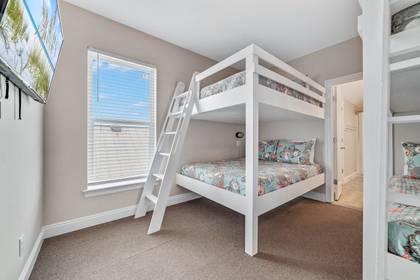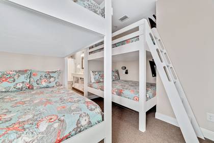 3rd Floor: 1 bedroom with 2 Queen Bunk Beds (sleeps up to 8) and 4 twin built-in beds in the game room.