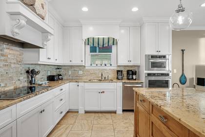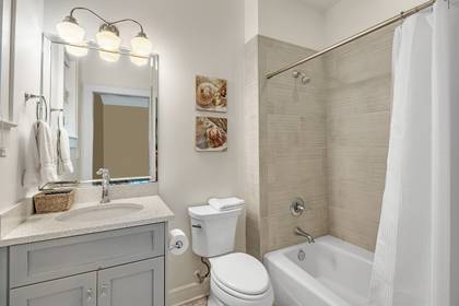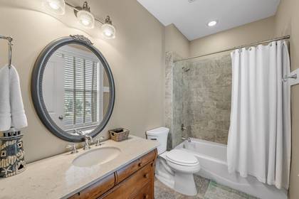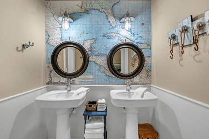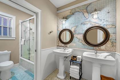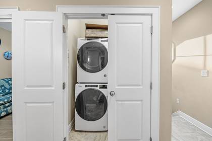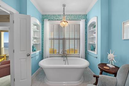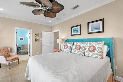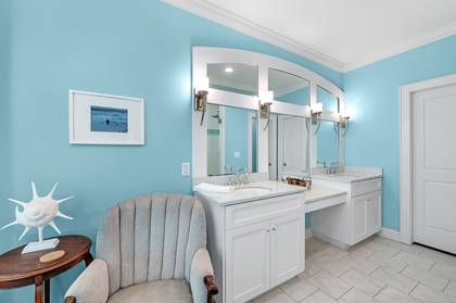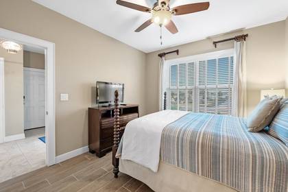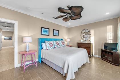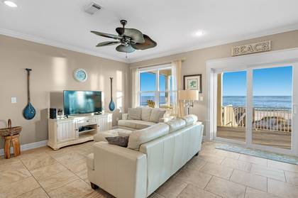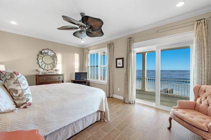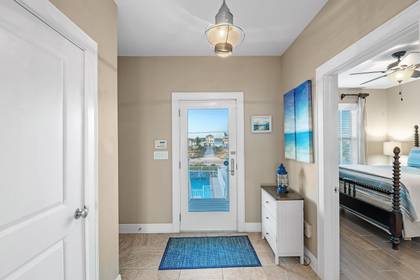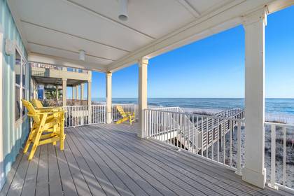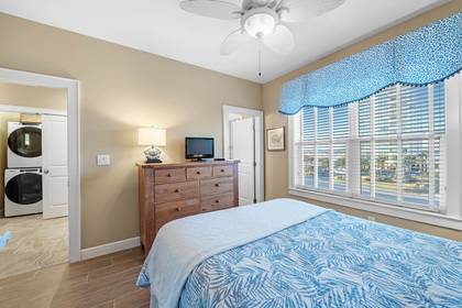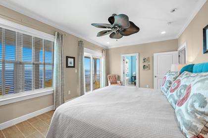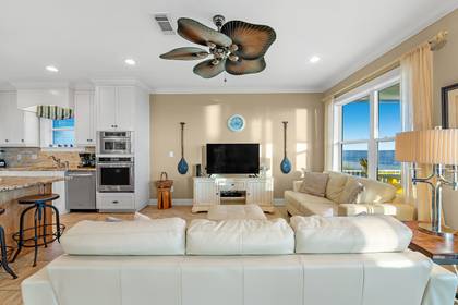 The main floor has the great room, a powder room and a lovely Queen bedroom with a private bath. Upstairs you'll find 3 more bedrooms, each with a private bath and flat-screen TV. These include a bedroom with a queen bed, a bedroom with 2 Twin over Full Bunks, and a wonderful beachfront King Master where you can wake up to a view of the sea. The master has a private beachfront porch and a deluxe bath where you can enjoy the views or the sunset while you soak in the tub. It also has a double vanity, a separate shower, and a private water closet. You'll also find a TV nook that is perfect for the kids to relax or to hook up their games, and the laundry.