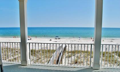 The real star of the show at Sea Blue is the beautiful sugar-white sand beach. Both floors feature porches that span the width of the house so you can relax and take in the view. There is an outdoor dining table so you can enjoy breakfast while you watch the dolphins. There is a dune walkover that puts you within a few easy steps of the Gulf. In the shady area under the house you'll find a charcoal grill, and a long picnic table.