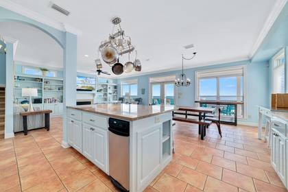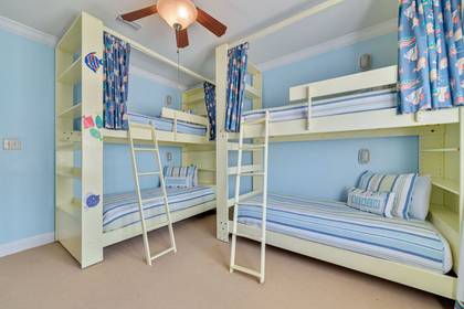 The top floor has a beachfront king master with a private porch, a bath with separate shower and tub, and a sitting room that has a twin daybed and trundle in case you need it for your kids or grandkids. You have two more king bedrooms, plus a bunk room that sleeps 4 and is sure to be the place the cousins want to stay.