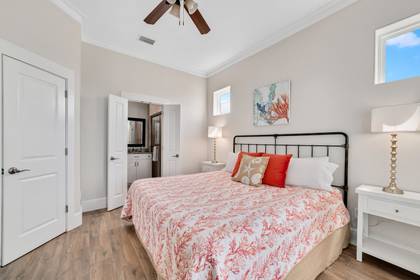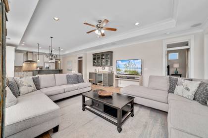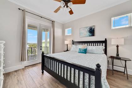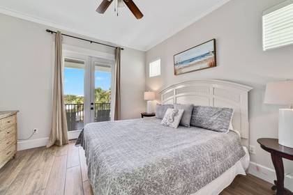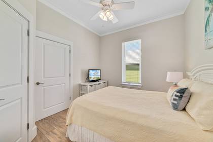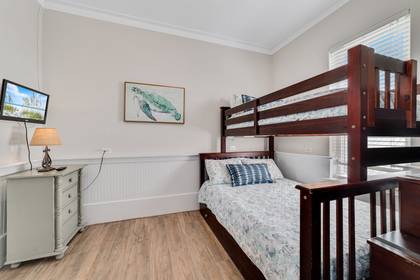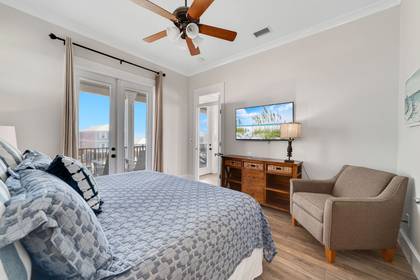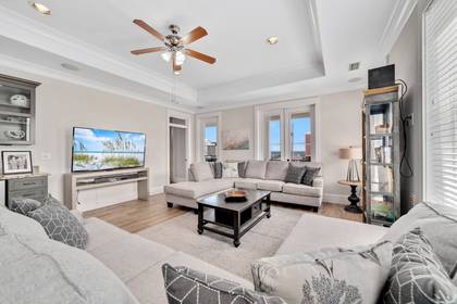 The bright Great Rooms form the main social area with a Smart TV. A wet bar with stand-alone ice maker and wine refrigerator awaits you in preparation for that perfect vacation libation. Each bedroom is equipped with its own bathroom and television. Each level has three master bedrooms with king-sized beds and private balcony access. Each level also has a room for kids to call their own during their stay. An elevator connects all levels together with the ground floor for ease of use.