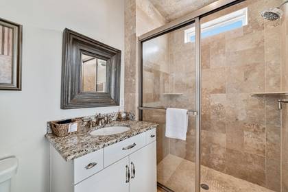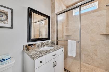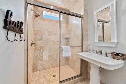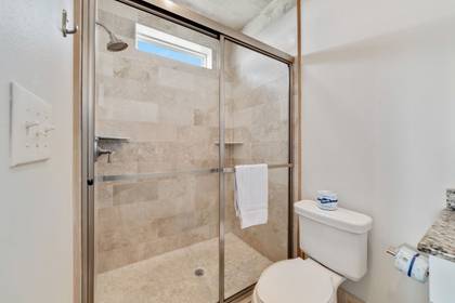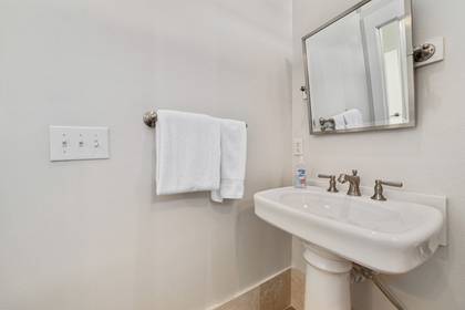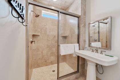 New for 2024, the top floor primary bath has been remodeled. In addition to being beautiful, it is also handicap accessible to accommodate our guests of all abilities.