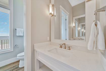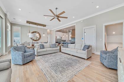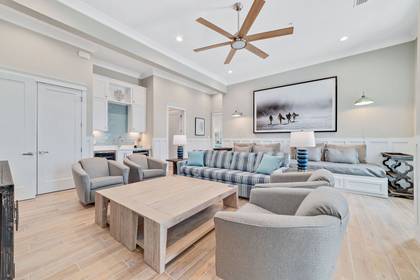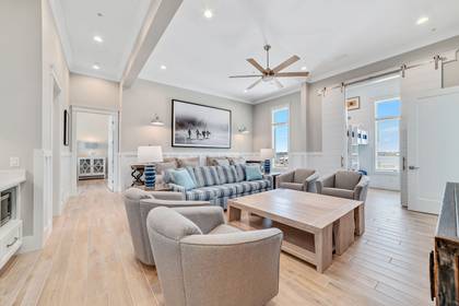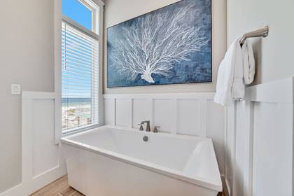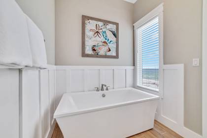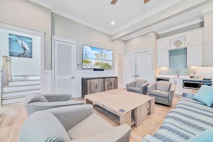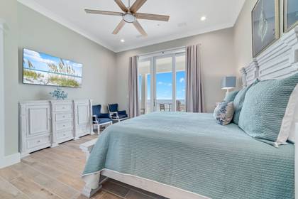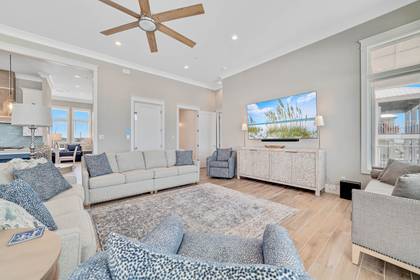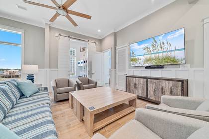 Outside, guests can enjoy a broad stretch of beach with beautiful sugar-white sand, a dune walkover, and a big, beautiful private pool. Aqua Therapy also features smart TVs throughout and free Wi-Fi for added convenience. This home is ideal for a family getaway or a peaceful retreat with friends, offering a perfect blend of luxury, comfort, and stunning views.