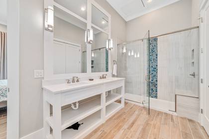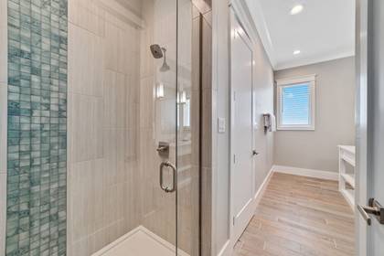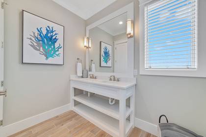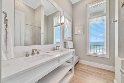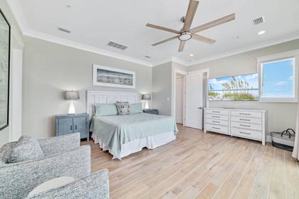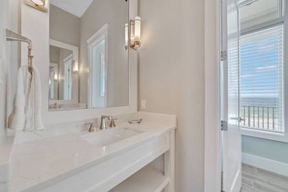 On the top floor, you will find two additional King bedrooms, one beach-facing and one lagoon-facing, each with a large private bath that includes a double vanity and shower. The views from this level are truly breathtaking, adding to the home's allure.