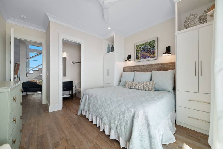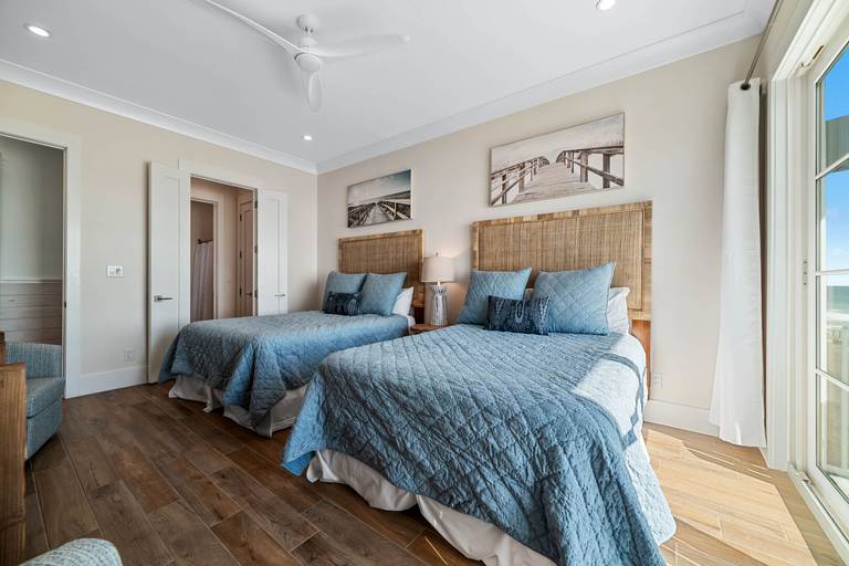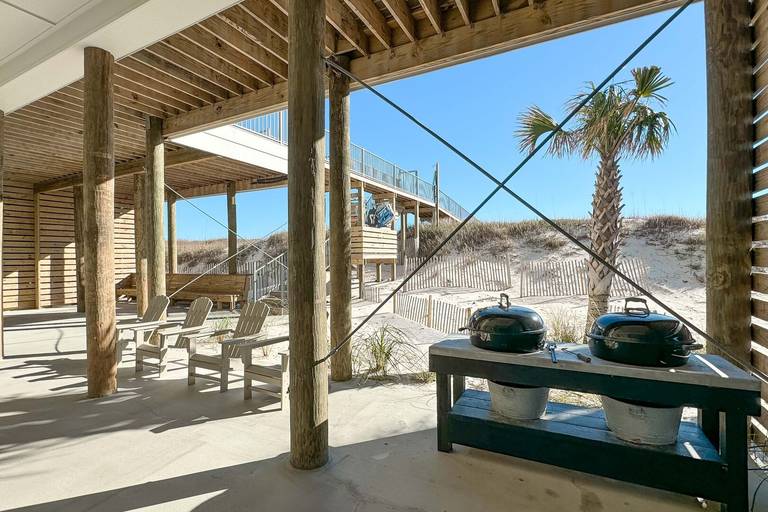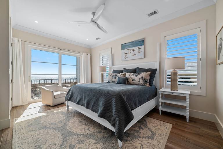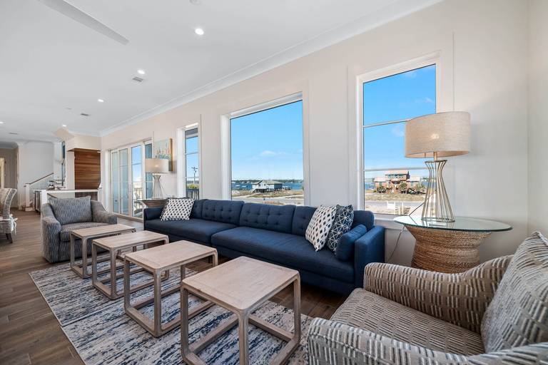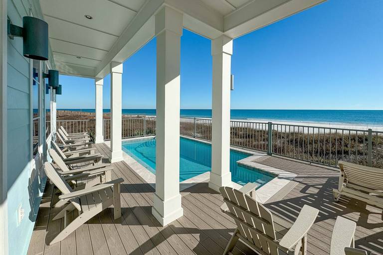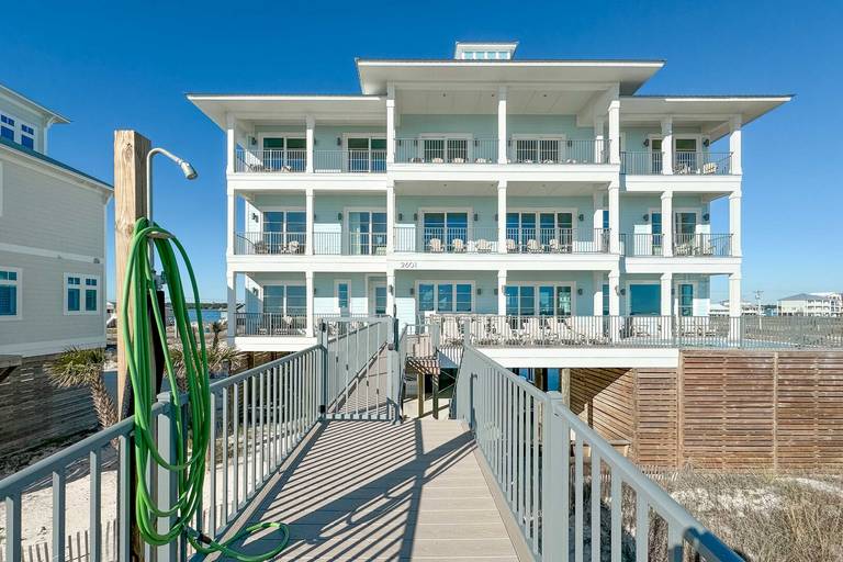 Throughout the house you'll find Smart TVs, free wifi and an elevator that reaches all levels. All levels have beachfront covered porches that span the beach side of Morning Breeze.