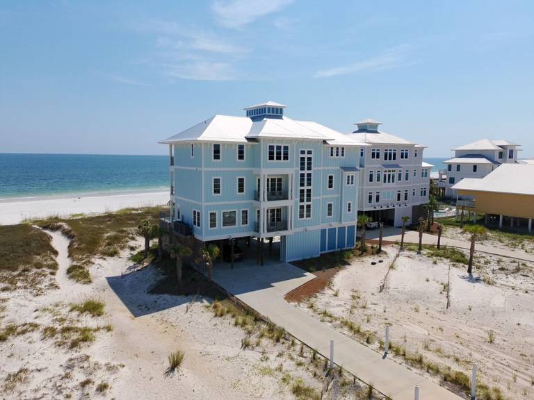 [1698]Morning Breeze is a new 10 bedroom plus bunkroom, 11.5 bath beachfront home with a private pool that can be heated October-May for $60 per day, elevator and more. You may remember the original Morning Breeze on the lagoon. We supersized it adding 4 more bedrooms plus a bunkroom, and all 3 levels have living areas featuring views that span from the Gulf to Little Lagoon.