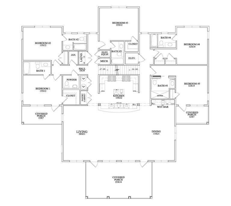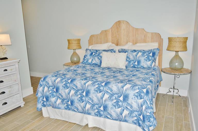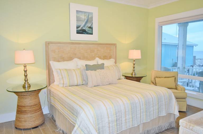 The main floor has 5 bedrooms, each with a private bath. There are 2 beachfront King bedrooms with porches, a king that has a handicapped accessible bathroom, and a king with a private bath. It also has 3 lagoon-view bedrooms, the first with a king bed, the second with a pair of queen beds, the third with a king bed.