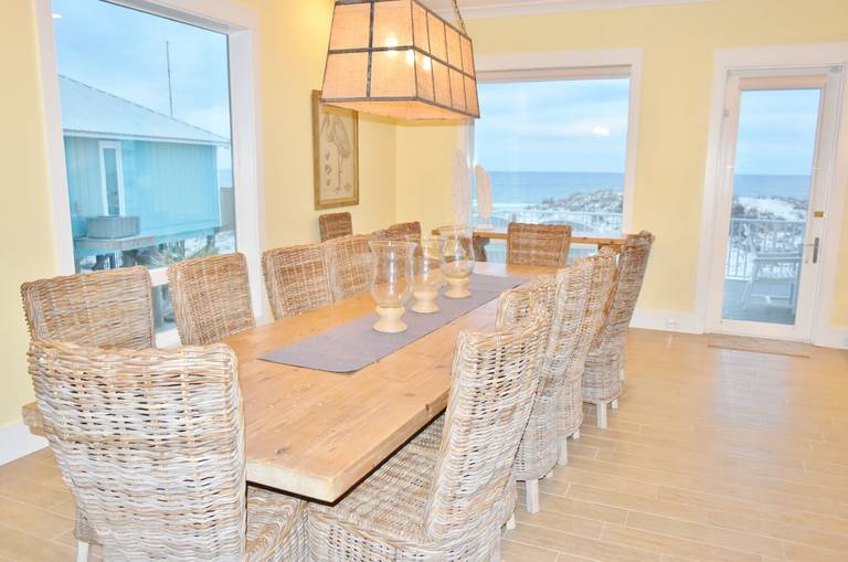 Outside you'll enjoy a private pool with great beachfront views, a big outdoor dining table, pool lounges, Adirondack chairs, swings, hammocks and a charcoal grill.
