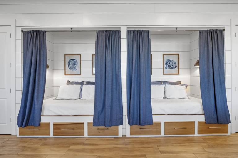 My one criticism is a lack of blinds or privacy drapes in 2nd floor common area. The built in beds are child sized and children there wake up far too early. This year we tried eye masks but to no avail.