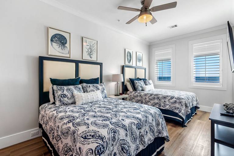 The top floor has 3 bedrooms (2 that each have a King plus a built-in XL Twin Daybed, 1 with a Pair of Queens). Each has a private bath. You'll also find a spacious light-filled family room, a laundry, another full bath, and a cool nook with 2 built-in XL Twin Daybeds plus 2 XL Twin Trundles.