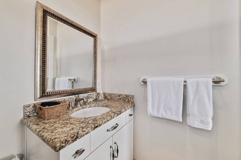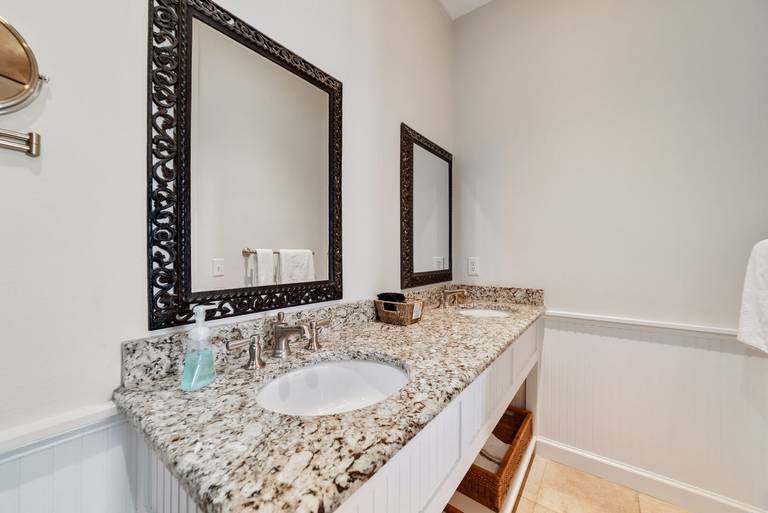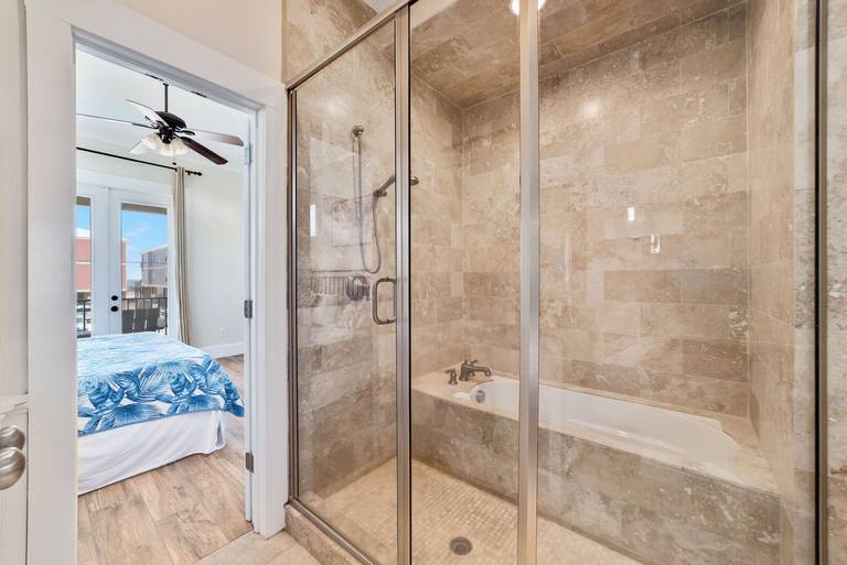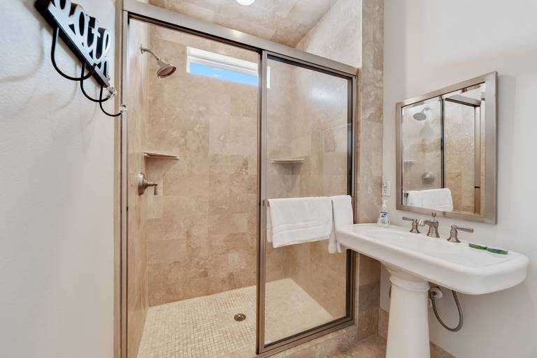 New for 2024, the top floor primary bath has been remodeled. In addition to being beautiful, it is also handicap accessible to accommodate our guests of all abilities.