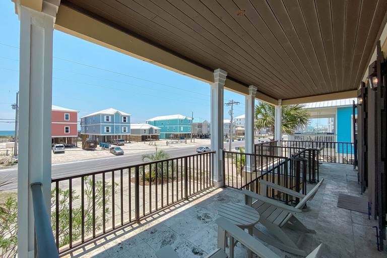 These are fairly new, well maintained and appointed units. Not a big deal to not be directly on the beach. 2 minute walk across the street to the dunes; 1 minute to the water.