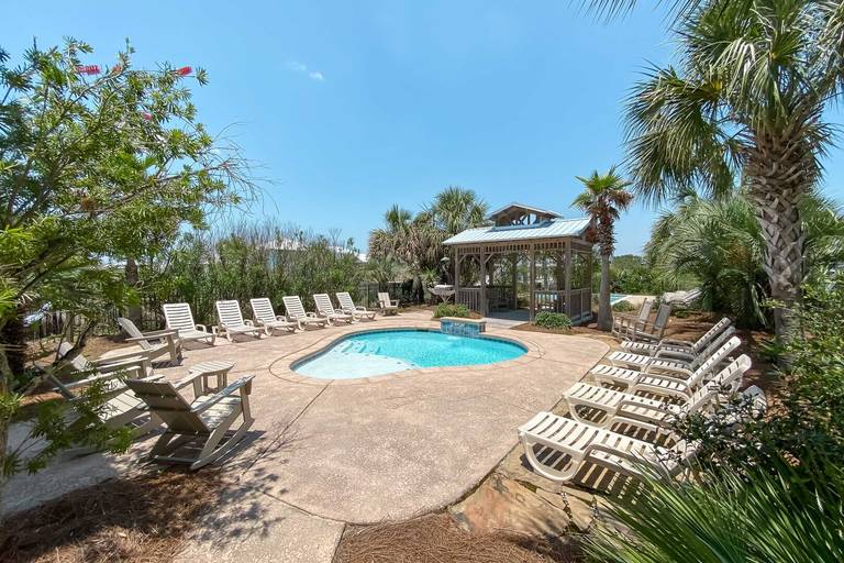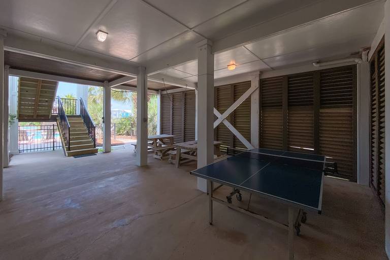 Connecting large front and back decks enhance the beach views and lagoon features - perfect for a quiet read or afternoon cocktails. Headed to the beach? You'll find convenient access right across the street along with a convenient outdoor shower. Finish your day in the oasis-like backyard complete with two pools, a smaller one (8'x10') that can be heated October-May for $60 per day, and a larger one (18'x24') that is great for cooling off in warm weather, a covered gazebo and hammock. In the covered breezeway you'll find a shaded ping-pong table and hammock chairs.